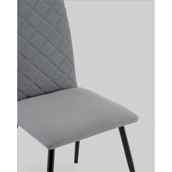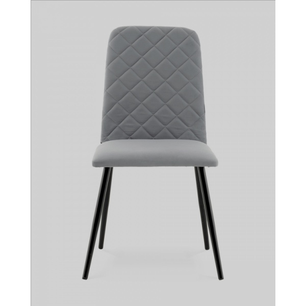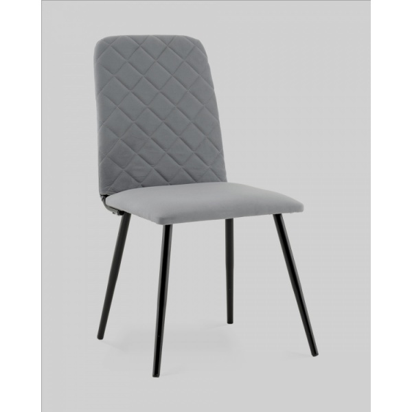 Спинка стула украшена аккуратной стёжкой в виде ромбов, добавляющей визуальный интерес и подчёркивающей уютный характер. Прямое сиденье и слегка наклонённая спинка обеспечивают удобную посадку для повседневных трапез и бесед. Прочные металлические ножки в чёрном цвете гарантируют надёжность и устойчивость конструкции.